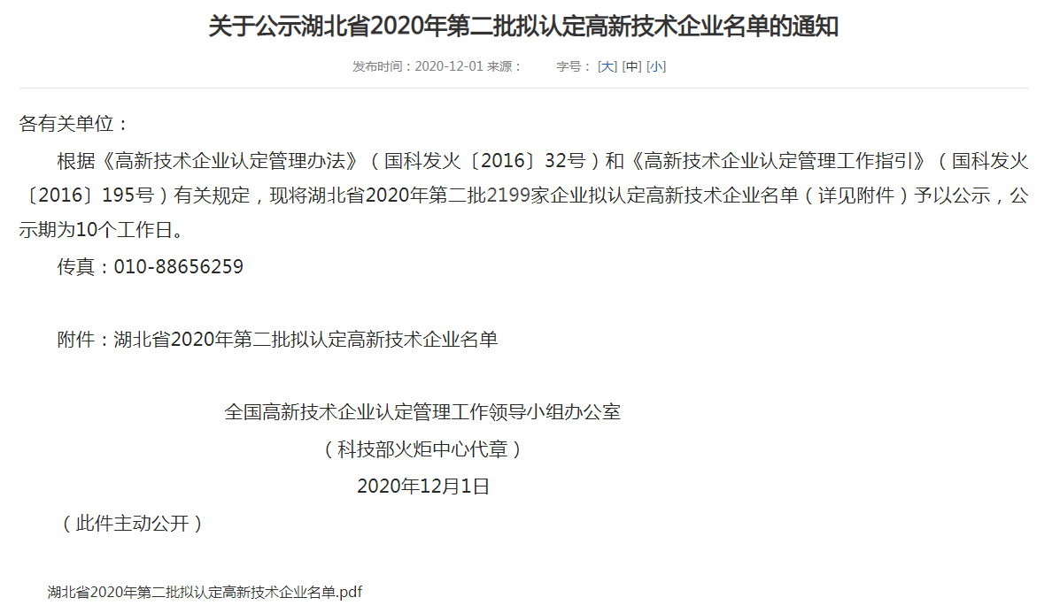 根据《高新技术企业认定管理办法》、《高新技术企业认定管理工作指引》等相关规定,在经过各级审核以及专家评审之后,湖北省高新技术企业认定管理工作领导小组办公室公布了认定高新技术的企业名单。其中,湖北金宝马环保科技有限公司名列于榜单之内。这代表着我司顺利通过了湖北省2020年高新技术企业的资格认定,并将取得由湖北省科技厅、财政厅、税务局联合颁发的“高新技术企业”证书。